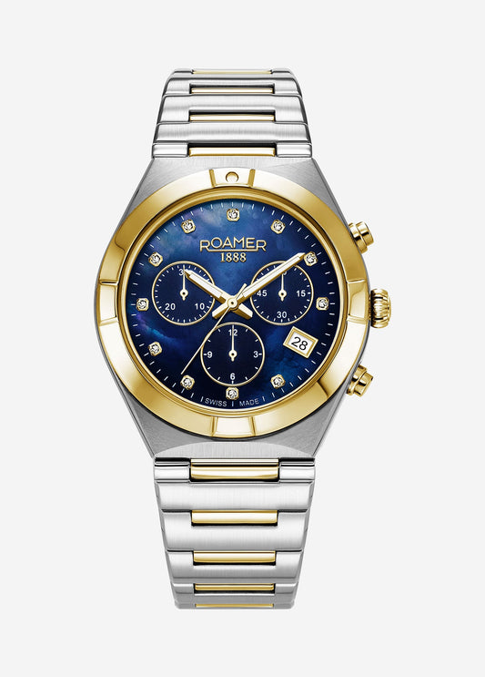 Roamer Rockshell Mark III Chronograph 44 mm Men's Watch – Black Dial, Black Leather Strap, Swiss Quartz Movement