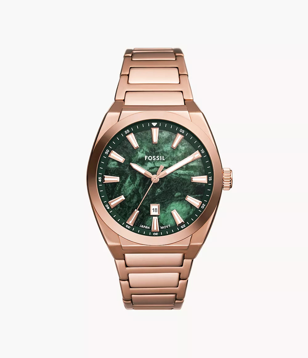 Fossil Everett FS6074 Quartz 42mm Green Dial Rose Gold-Tone Men’s Watch
