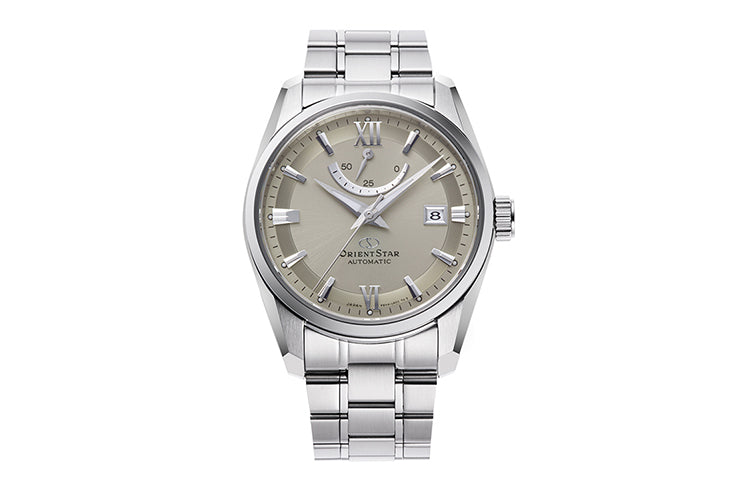 The Orient Star RE-AU0110N embraces the calming beauty of earthy tones with its minimalist grey dial that reflects the quiet simplicity of natural rock textures. Its finely executed case blends hairline and mirror finishing, complemented by a sapphire crystal featuring anti-reflective coating for exceptional clarity. The robust SUS316L bracelet enhances durability while maintaining a premium, contemporary aesthetic.