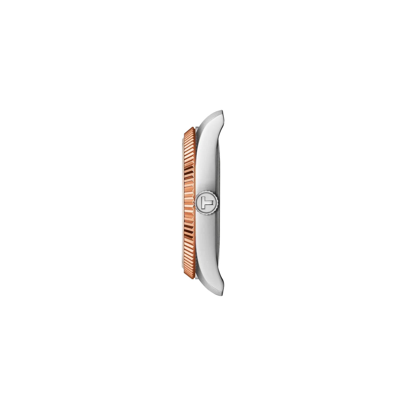 • 34 mm stainless steel case with rose gold PVD coating