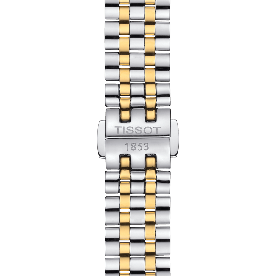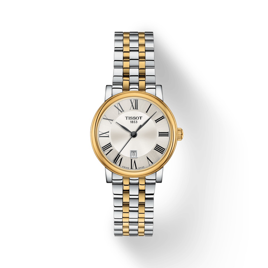 The Tissot Carson Premium T122.210.22.033.00 is crafted for timeless elegance, pairing a 30mm yellow gold PVD–coated stainless steel case with a refined silver dial. Roman numeral markers and elongated hands highlight its classic character, while the Swiss quartz movement ensures accurate performance supported by an End-of-Life indicator. The scratch-resistant sapphire crystal provides long-lasting clarity, and the two-tone bracelet offers a polished, versatile look suitable for any occasion. With 50m water resistance and a slim 6.7mm profile, this watch delivers both reliability and sophistication for everyday wear.