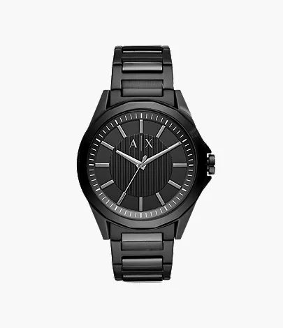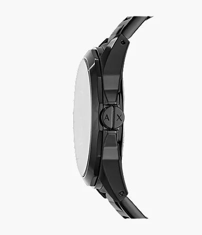This Armani Exchange 44mm men’s watch delivers a bold, minimalist aesthetic with its all-black stainless steel construction. The black dial features a clean three-hand display for effortless readability, offering a refined balance between modern style and everyday functionality. Crafted with a sturdy stainless steel case and bracelet, it’s built for durability while maintaining a polished look suitable for any occasion. The two-pusher foldover clasp ensures a comfortable and secure fit, and the reliable quartz movement (battery type SR626SW) provides accurate performance day after day.