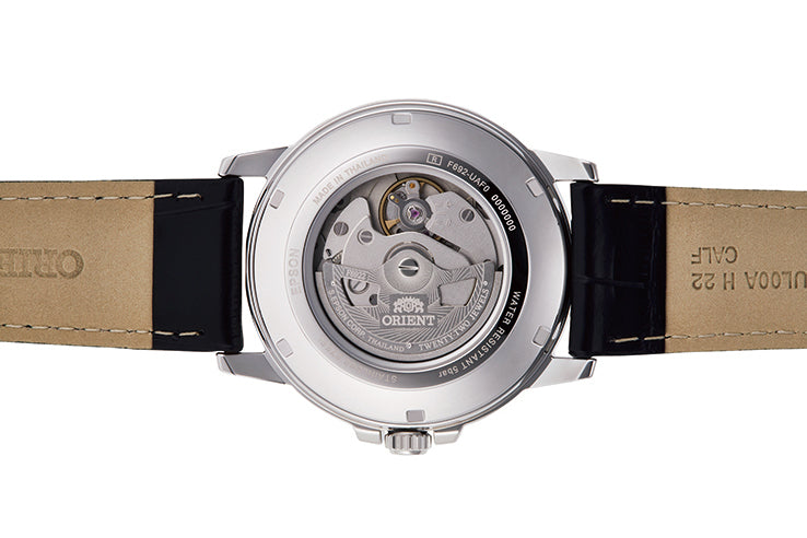 The Orient RA-AA0C04B Mechanical Contemporary Watch blends modern styling with the trusted engineering of Orient’s in-house automatic Caliber F6922 movement. Its 41.9mm stainless steel case offers a balanced wrist presence, while the crystal glass front and see-through screw caseback highlight the watch’s mechanical craftsmanship. Designed for everyday reliability, the movement provides smooth automatic winding, manual wind capability, a second-hand halt mechanism, and a practical day/date complication. With 50 meters of water resistance and a classic leather strap, this contemporary model delivers a sophisticated yet versatile look suited for business, casual, or daily wear.