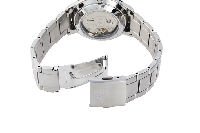 The Orient RA-AC0E02S Mechanical Contemporary offers a clean, modern aesthetic combined with the trusted craftsmanship of Orient’s in-house mechanical engineering. Featuring a polished 40mm stainless steel case and refined white dial, it stands out with striking blue hands and matching markers that create an elegant yet contemporary look. Its robust stainless steel bracelet completes the design for a versatile timepiece suitable for daily professional or casual wear.