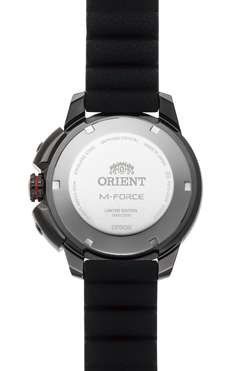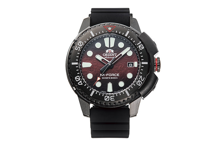 The Orient M-FORCE RA-AC0L09R is a rare limited-edition adventure watch inspired by Earth’s raw volcanic power. Its deep red dial symbolizes molten magma, capturing the strength, vitality, and explosive energy of the planet. Built to ISO 6425 standards for air diving, it offers 200m water resistance, a reinforced protection shield, screw-down crown, and a black-plated uni-directional bezel for maximum durability. Designed for true explorers, it blends rugged engineering with a bold, striking aesthetic.