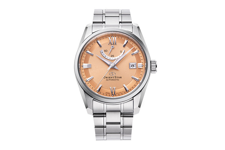 The Orient Star RE-AU0108G embraces the warm elegance of nature through its copper-tone dial, capturing the subdued beauty of desert landscapes. Its 38.5mm stainless steel case blends mirror and hairline finishes for a crisp, modern look, paired with a robust SUS316L metal bracelet. The sapphire crystal with anti-reflective coating ensures superior clarity and scratch resistance, elevating both style and functionality.