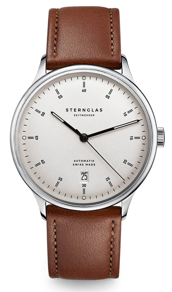 Sternglas KANTON 2.0 39mm Automatic Watch S02-KF10-MO02, Silver Dial, Sapphire Crystal, Modena Brown Leather Strap, 5 ATM Water Resistant