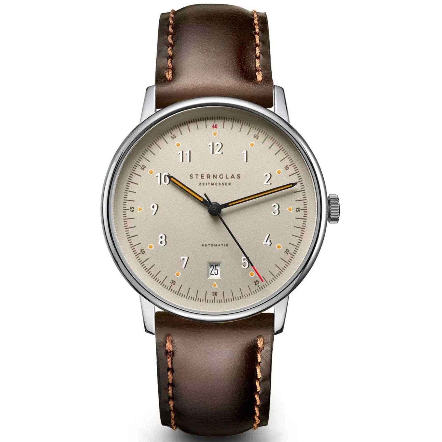 Sternglas LUMATIK 38mm Automatic Watch S02-LM26-BR03, Beige Dial, Sapphire Crystal, Bridle Dark Brown Leather Strap, 5 ATM Water Resistant