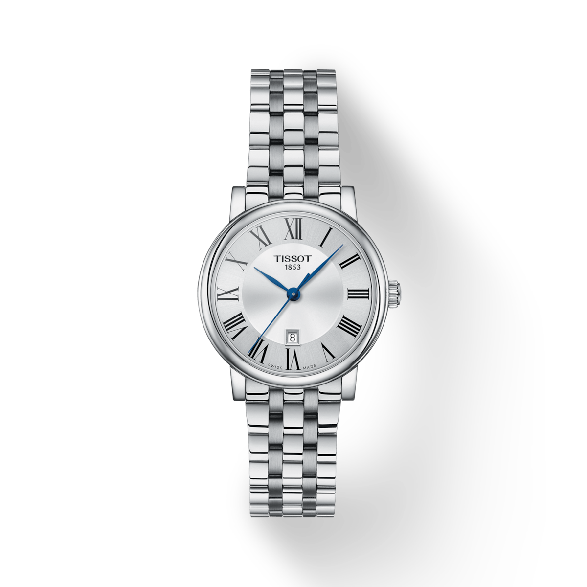 The Tissot Carson Premium T122.210.11.033.00 embodies timeless elegance with its refined 30mm stainless steel case and classic Roman numeral silver dial. Powered by a precise Swiss quartz movement, it features an End-of-Life indicator for reliable everyday performance. The slim profile and polished bracelet make it exceptionally comfortable, while the sapphire crystal ensures lasting clarity and scratch resistance. Water resistance up to 50m adds practical durability, making it suitable for daily wear in any setting. A versatile and sophisticated design, it seamlessly transitions from casual outings to formal occasions.