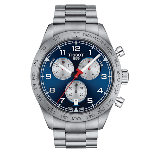 Experience precision and performance with the Tissot T-Sport Chronograph Quartz Blue Dial Men's Watch T131.617.11.042.00. This watch features a 316L stainless steel case and bracelet, fixed stainless steel bezel with tachymeter markings, and a striking blue dial with white hands and Arabic numeral hour markers. The minute markers around the outer rim and tachymeter scale add a sporty touch to this watch.