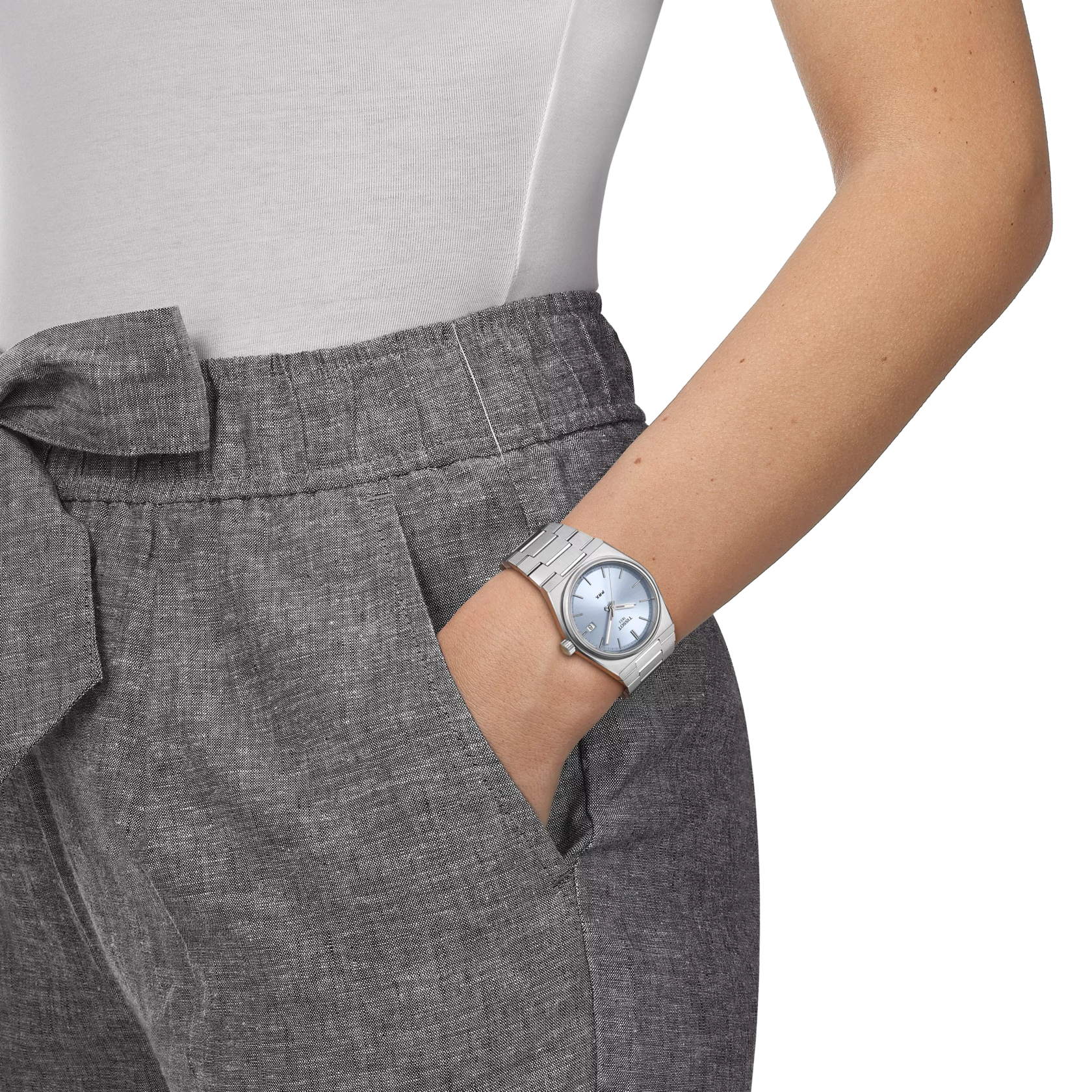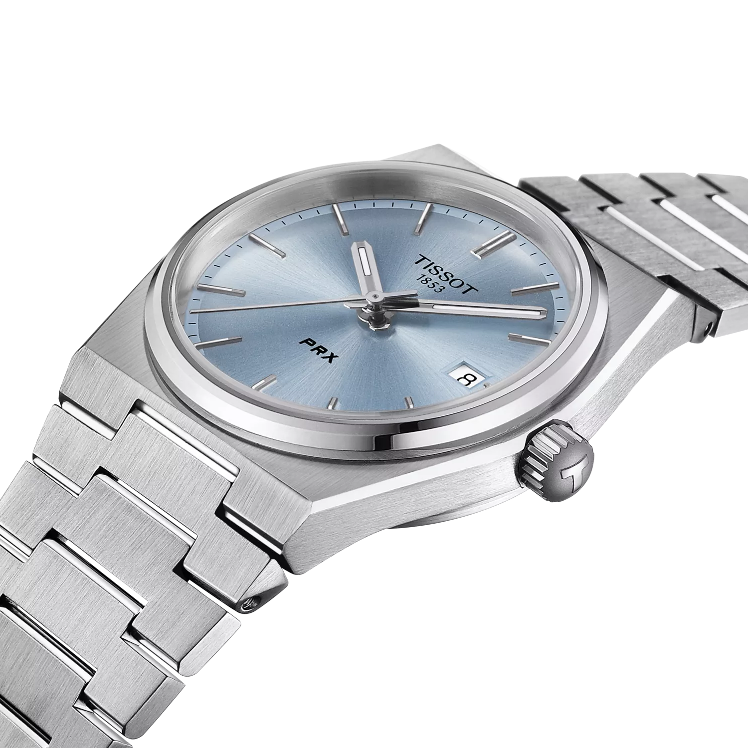 The Tissot PRX T137.210.11.351.00 revives the exact 35 mm proportions of the 1978 original, offering a slim and refined expression of retro-modern design. Its stainless steel case and scratch-resistant sapphire crystal provide durability, while the light blue dial adds a contemporary, stylish touch. Powered by a precise Swiss quartz movement with an End-of-Life indicator, it ensures reliable performance for everyday wear. The integrated stainless steel bracelet delivers ergonomic comfort, and the quick-release feature offers effortless strap changes. With 100 m water resistance, this PRX seamlessly blends heritage inspiration with modern versatility.