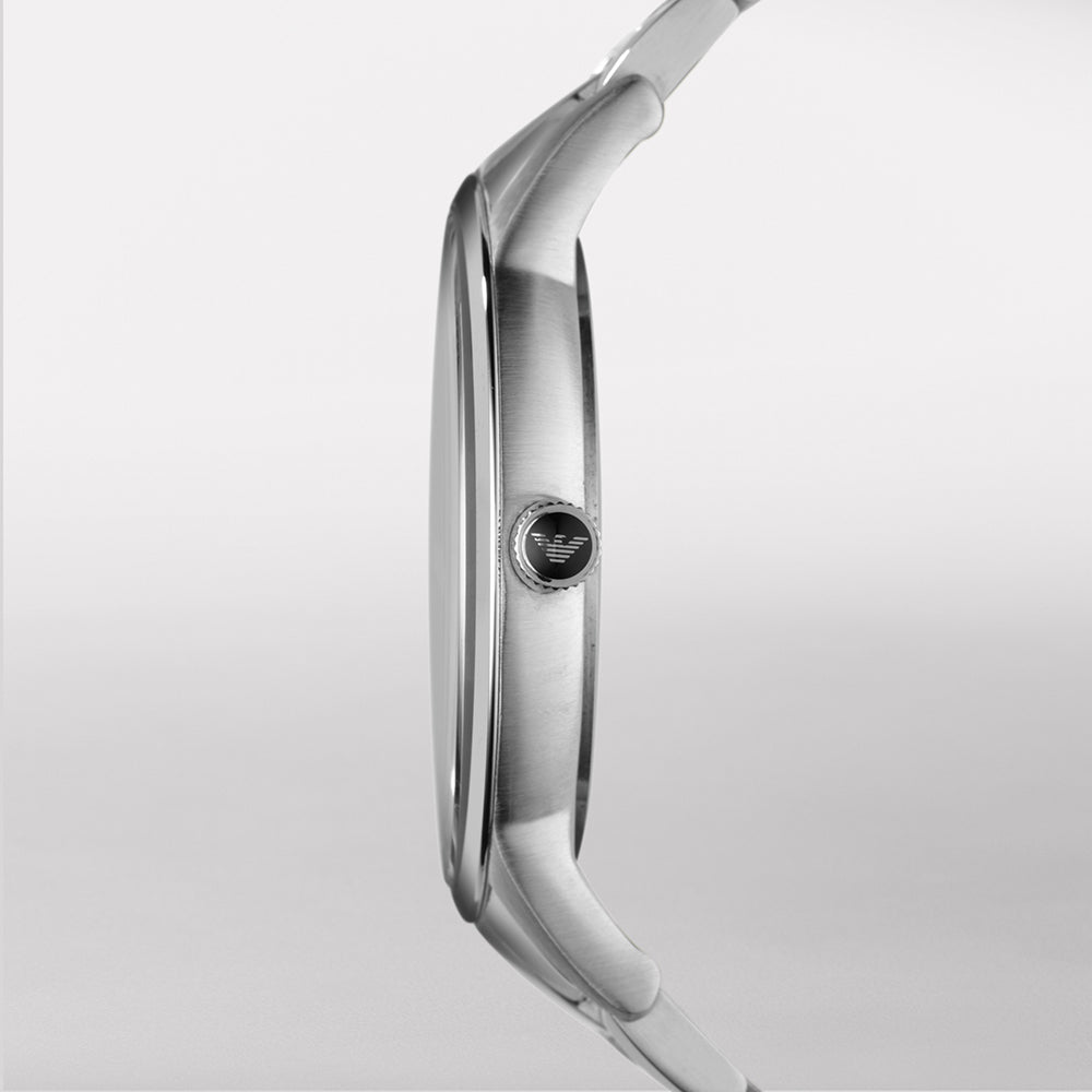 The Emporio Armani AR2457 is the perfect balance of modern refinement and timeless design. Its 43mm stainless steel case houses a black dial accented with minimalist silver-tone hands and markers, creating a confident yet understated aesthetic. Powered by a Swiss Ronda quartz movement, this watch delivers reliable accuracy with a battery life of up to 60 months. A scratch-resistant mineral crystal and 5 Bar water resistance make it durable for everyday wear, from office to evening occasions. Finished with a stainless steel bracelet and butterfly clasp with push buttons, the AR2457 ensures a secure and comfortable fit for daily sophistication.