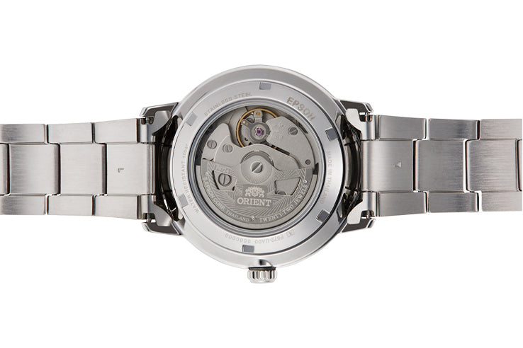 The Orient RA-AC0E01B Mechanical Contemporary is a refined everyday timepiece combining modern elegance with dependable mechanical engineering. Its 40mm stainless steel case houses a sleek black dial enhanced by silver-tone markers and hands, offering a clean, sophisticated look suitable for both business and casual settings. Powered by the in-house Caliber F6722, it delivers automatic self-winding, hand-winding capability, a hacking seconds function, and a practical date feature—along with a 40-hour power reserve for reliable daily use.