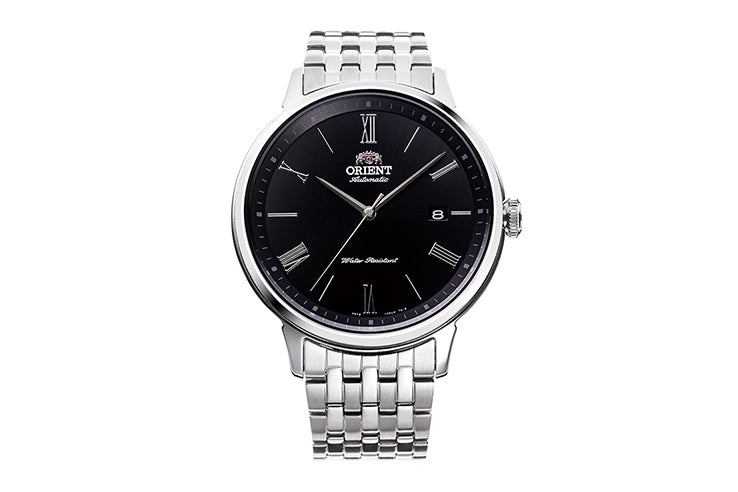 The Orient RA-AC0J02B is a refined modern timepiece built around a slim-profile case featuring a thin bezel, wide black dial, and tapered case sides for a comfortable wrist fit. Powered by the reliable in-house Calibre F6722, it offers automatic winding, hand winding, hacking seconds, and a clear date display. The crystal glass and screw-down see-through caseback highlight both durability and elegant mechanical detail.