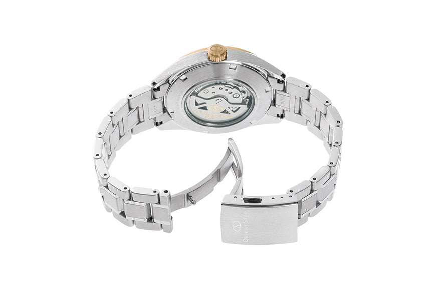 Celebrating 10 years of global success, the Orient Star Modern Skeleton evolves with a refined champagne-tone dial that harmonizes beautifully with its metallic case and open-work layout. The movement becomes part of the dial’s design, creating visual depth and a striking mechanical presence that sets this model apart.
