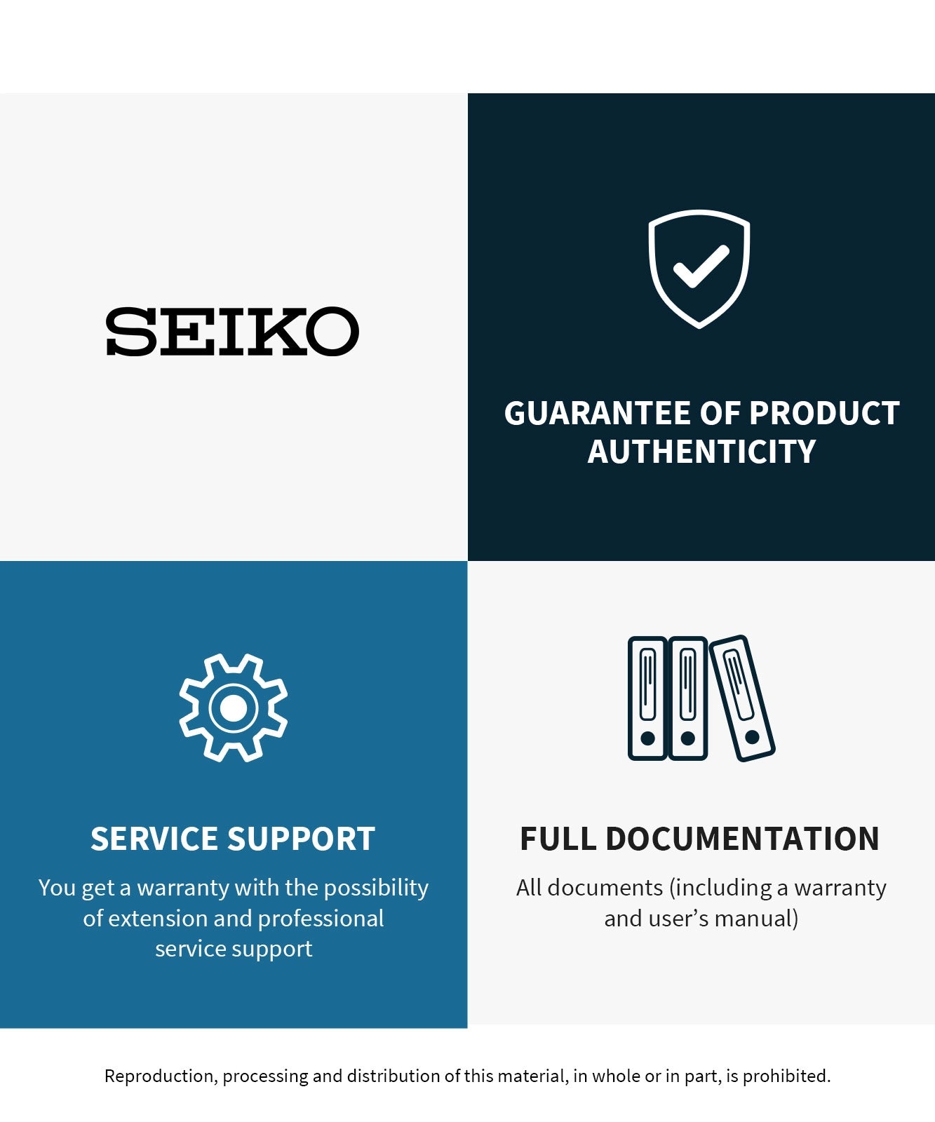 As authorized retailers, we provide a 3-Year Seiko International Warranty. This warranty is recognized worldwide at Seiko service centers and covers manufacturing defects, ensuring your timepiece is protected with trusted global support.