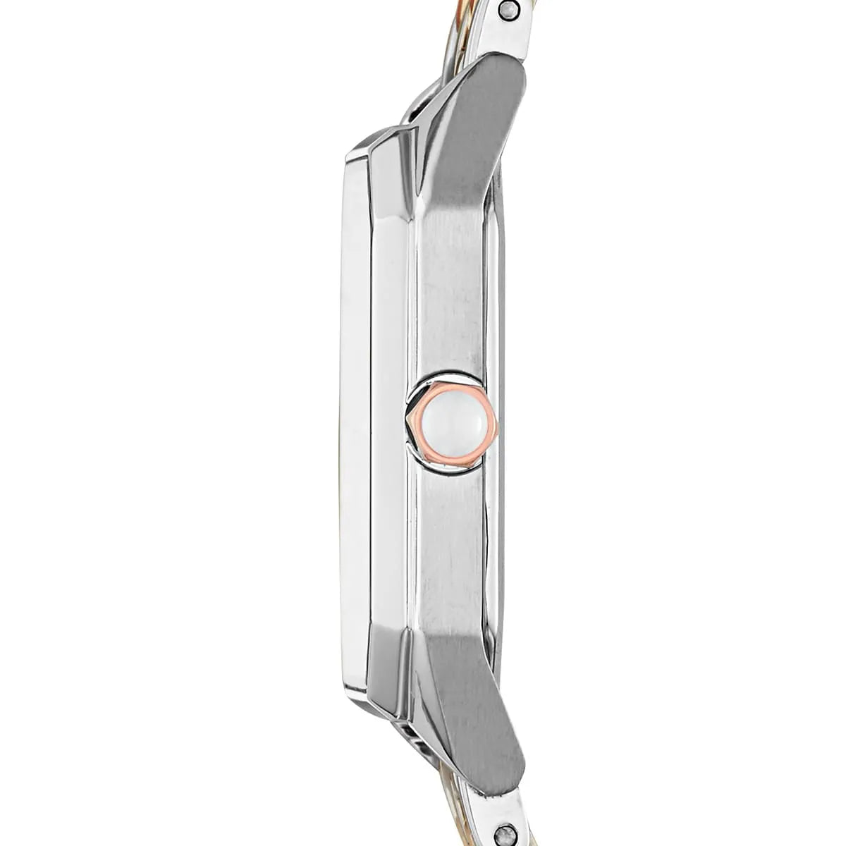 • 24mm square two-tone silver & rose gold stainless steel case with white dial