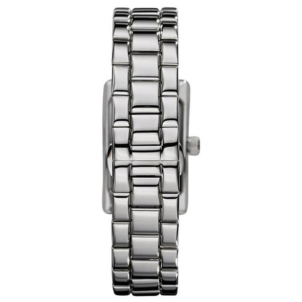 The Emporio Armani AR0157 is a refined ladies’ watch that blends timeless elegance with modern sophistication. Its 22mm rectangular stainless steel case and slim 5mm profile create a sleek, minimalist silhouette ideal for everyday wear or formal occasions. The black dial, accented with silver-tone hands and a small seconds sub-dial, offers both functional charm and effortless readability. Powered by a precise quartz movement, it ensures dependable timekeeping, while a scratch-resistant mineral crystal provides lasting clarity. With 5 ATM water resistance and a stainless steel bracelet secured by a deployment clasp, the AR0157 is built for durability, comfort, and enduring style.