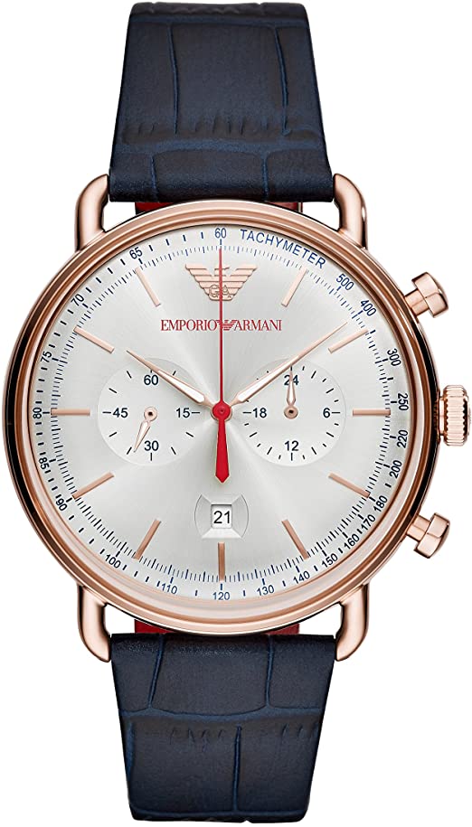 Emporio Armani Men's Chronograph Quartz Stainless Steel Watch with Calfskin Strap, Blue AR11123