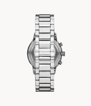 The Emporio Armani AR11208 blends refined style with precision engineering, creating a chronograph designed for modern sophistication. Its 43mm stainless steel case frames a sleek black dial accented with silver-tone hands and markers, delivering sharp contrast and timeless appeal. Powered by a reliable quartz chronograph movement, it offers accurate timekeeping with functional sub-dials for detailed tracking. A scratch-resistant mineral crystal ensures lasting clarity, while 5 ATM water resistance makes it practical for everyday wear. Finished with a stainless steel bracelet and secure butterfly deployant clasp, the AR11208 provides both durability and comfort, making it ideal for business or evening occasions.