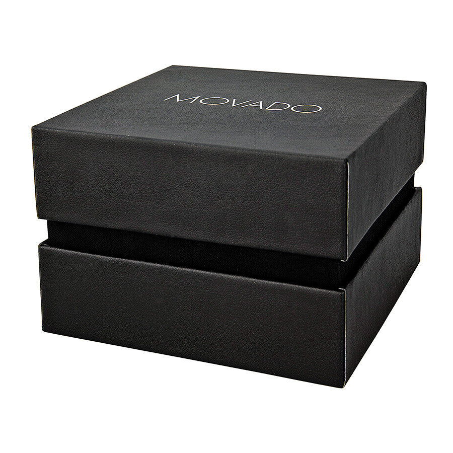 The Movado 1881 Automatic Black Dial Black Leather Men's Watch 0606875 blends classic elegance with refined Swiss craftsmanship. Its 39.5 mm yellow gold PVD stainless steel case contrasts beautifully with the black dial, highlighted by gold-tone dauphine hands, index markers, and the signature Movado dot. Powered by the ETA 2824-2 automatic movement, it delivers a reliable 40-hour power reserve, ensuring smooth and accurate performance. A scratch-resistant sapphire crystal and premium black leather strap add durability and sophistication suited for daily wear or formal occasions. Water resistance to 30 meters supports practicality while maintaining the polished dress-watch aesthetic.