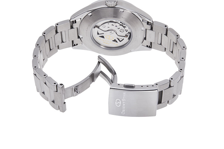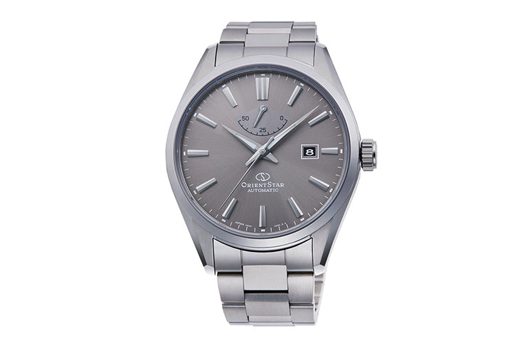 The Orient Star RE-AU0404N embodies practical functionality with a sleek and modern aesthetic. The strong 42mm stainless steel case houses a clean, easy-to-read grey dial enhanced by an anti-reflective sapphire crystal, ensuring excellent legibility in any lighting condition. Its refined brushed and polished surfaces highlight the signature urban appeal of the Contemporary collection.