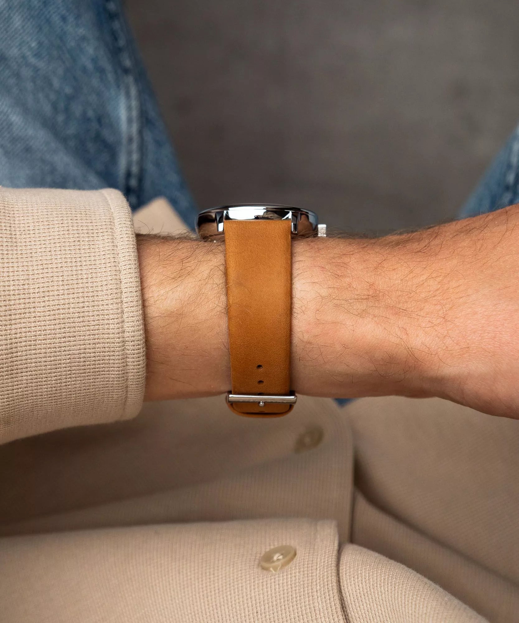 Powered by the dependable Miyota 8215 automatic movement, it delivers smooth self-winding precision with a 42-hour power reserve. Finished with a brown leather strap and rated to 5 ATM water resistance, this timepiece offers both everyday practicality and timeless sophistication.